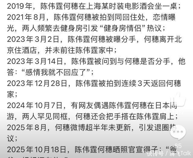 两个人有共同的爱好,都是喜欢健身,恋爱初期被频繁拍到去健身房,被媒体称为健身房情侣。 两人的感情也是一波三折,2023年月,两人被曝分手,何穗住进酒店。结年月,两人和好,陈伟霆被拍到连日回到何穗家。